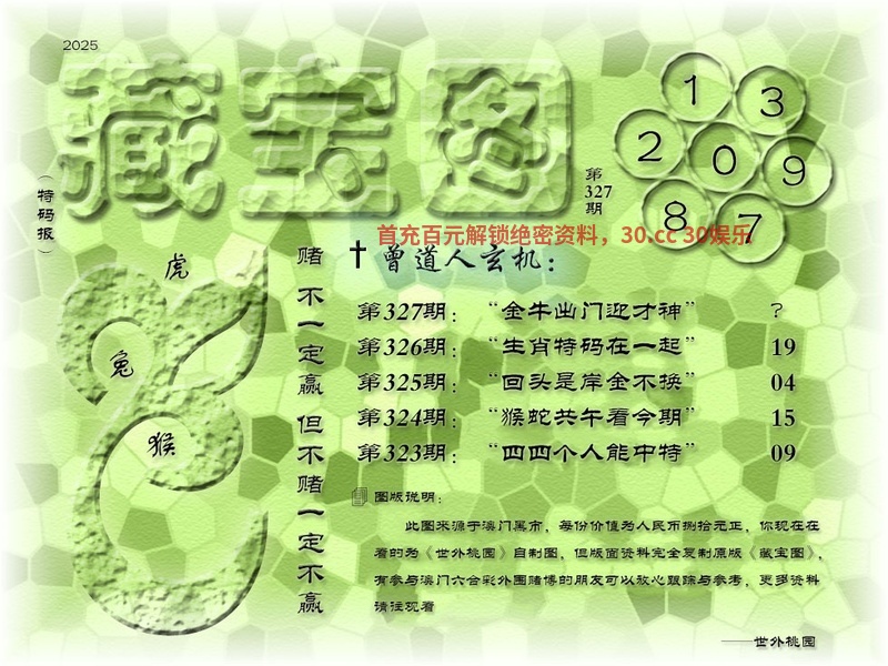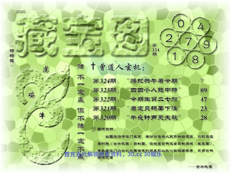 329期藏宝图曾道人玄机:更新 解:更新 解特肖:更新 |